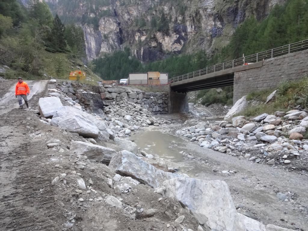 Durch die Eintiefung der Flusssohle der Doveria sind die Widerlager der Nationalstrassenbrücken Gabi-Brücke 1 und Gabi-Brücke 2 der Simplonpassstrasse der Gefahr einer Unterkolkung ausgesetzt. Verschiedene Sofortmassnahmen wurden bereits 2010 ausgeführt. So wurde der bestehende Blockwurf mit einem geneigten Blocksteinversatz, bestehend aus einer 50 cm dicken, armierten Betonunterlage, gestärkt. Im 2014 wurde durch das UVEK das Ausführungsprojekt genehmigt und darauf basierend das Detailprojekt erstellt.